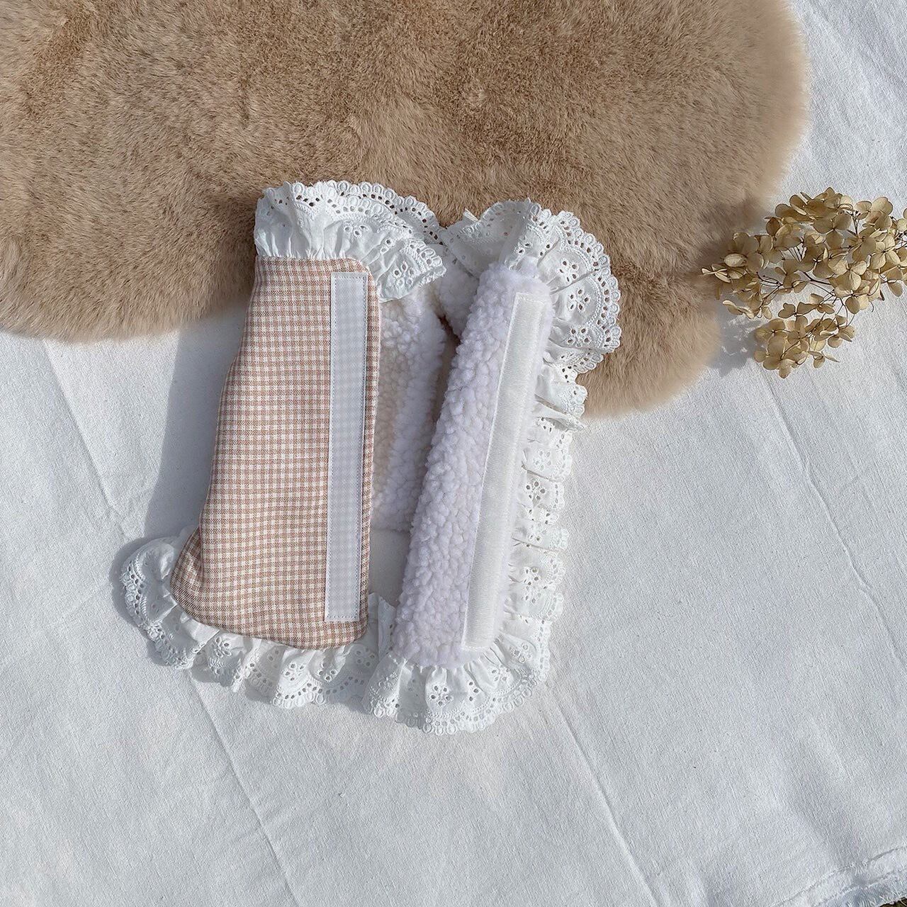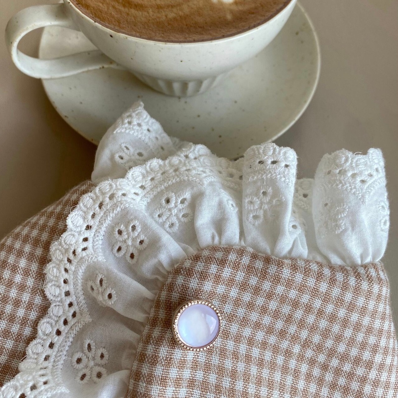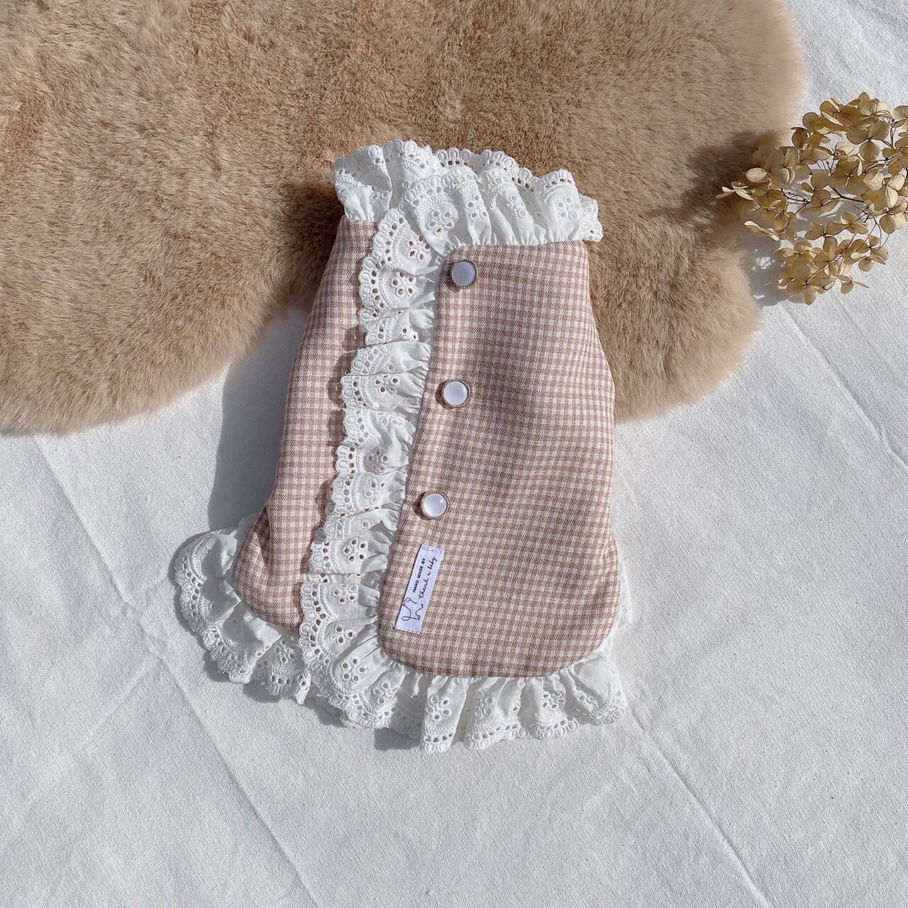 ベージュチェックにフリルが施された